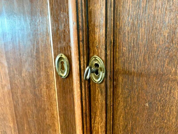 - De bovenkast met twee deuren en daarachter drie legplanken en twee kleine laden