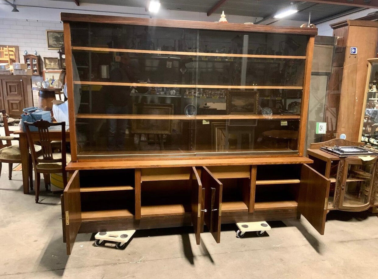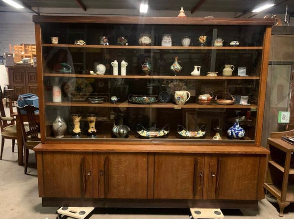 - Prachtige grote Eikenhout Gefineerde Vitrinekast